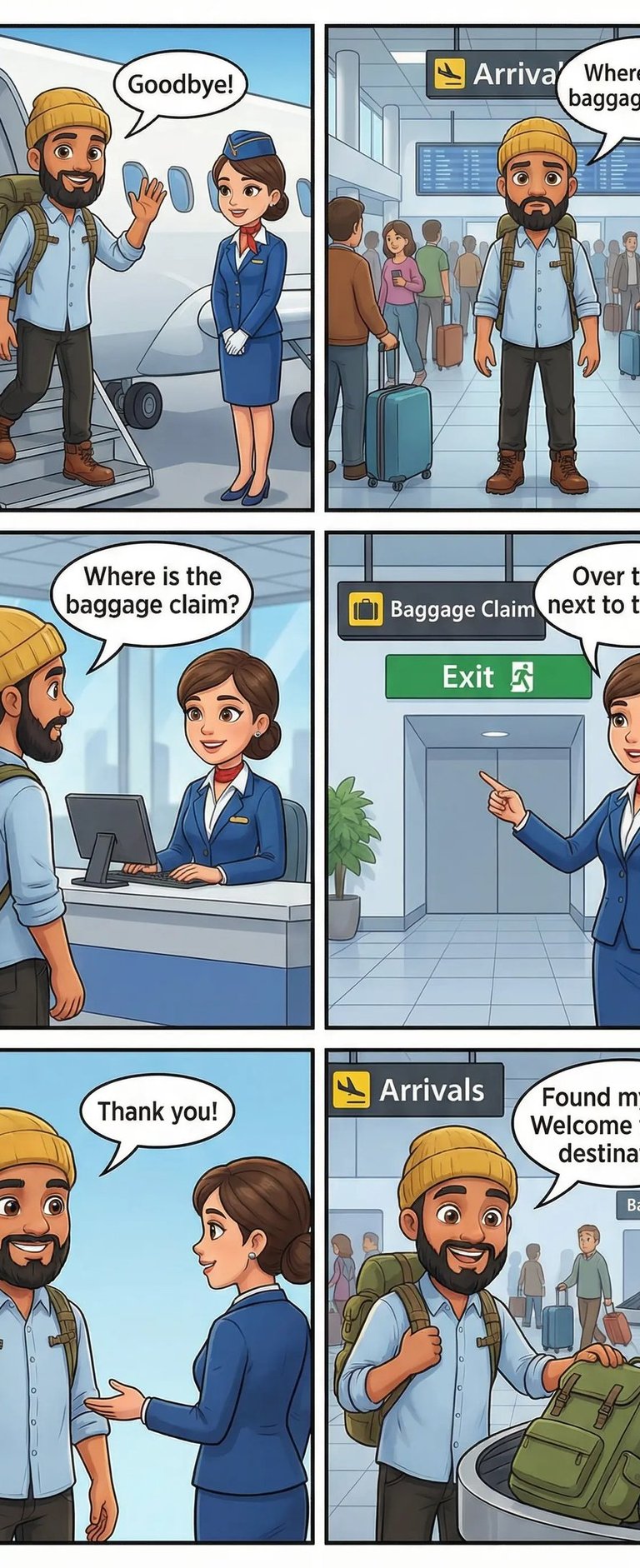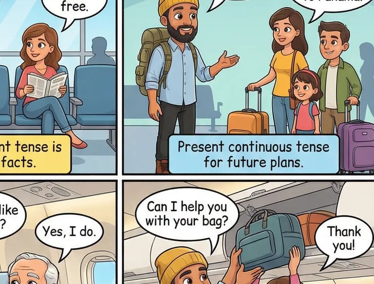 Um ebook em quadrinhos criado para quem quer ler em inglês e aprender o básico necessário para viajar, mesmo sem experiência com o idioma. Com histórias simples, diálogos curtos e situações reais, o leitor aprende palavras e frases essenciais usadas em aeroportos, hotéis, restaurantes e no dia a dia da viagem. A leitura é leve, visual e intuitiva, facilitando a memorização e ajudando a ganhar confiança para entender e se comunicar em inglês sem complicação.